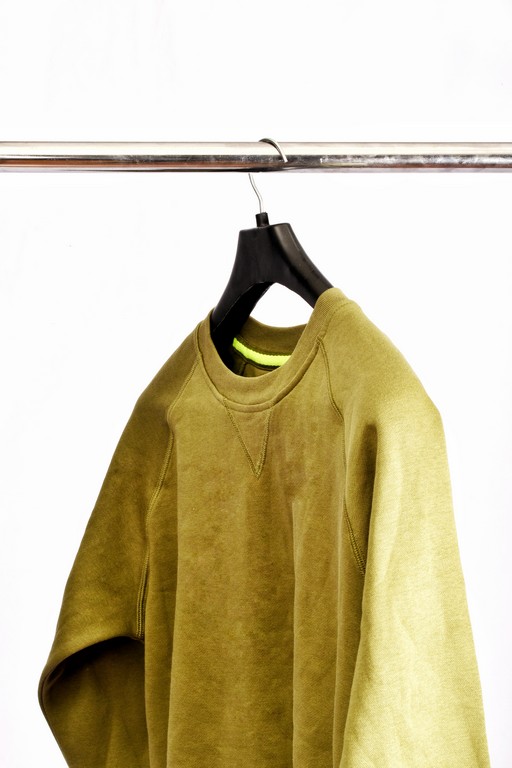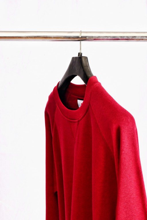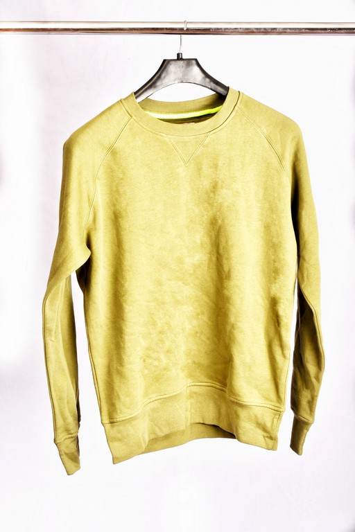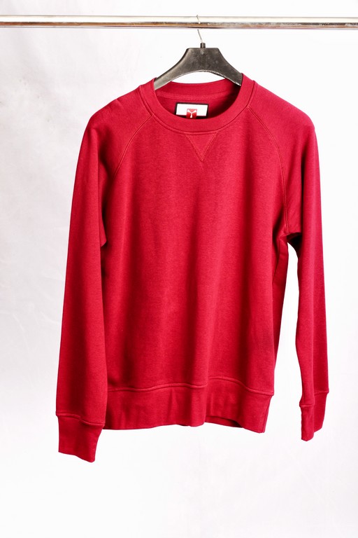 Men sweatshirt with crew neck, raglan sleeves, aesthetic stitching V at neck, stretch rib cuffs and waist, reinforced stitching